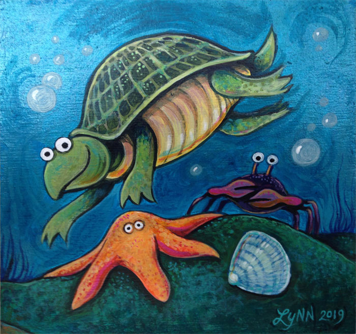 She's been enjoying time with her granddaughter and grandson, travelling, and doing many other things, including painting with acrylics! You can see some of her art below.
