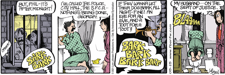 Lynn's Comments: The graffiti in panel two was a shout out to my friend and cartoonist Tim Oliphant.