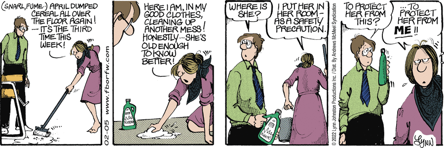 Lynn's Comments: Did you catch the error here? I show John with the bottle of cleaning solution in his right hand, but it switches to his left in the last panel.