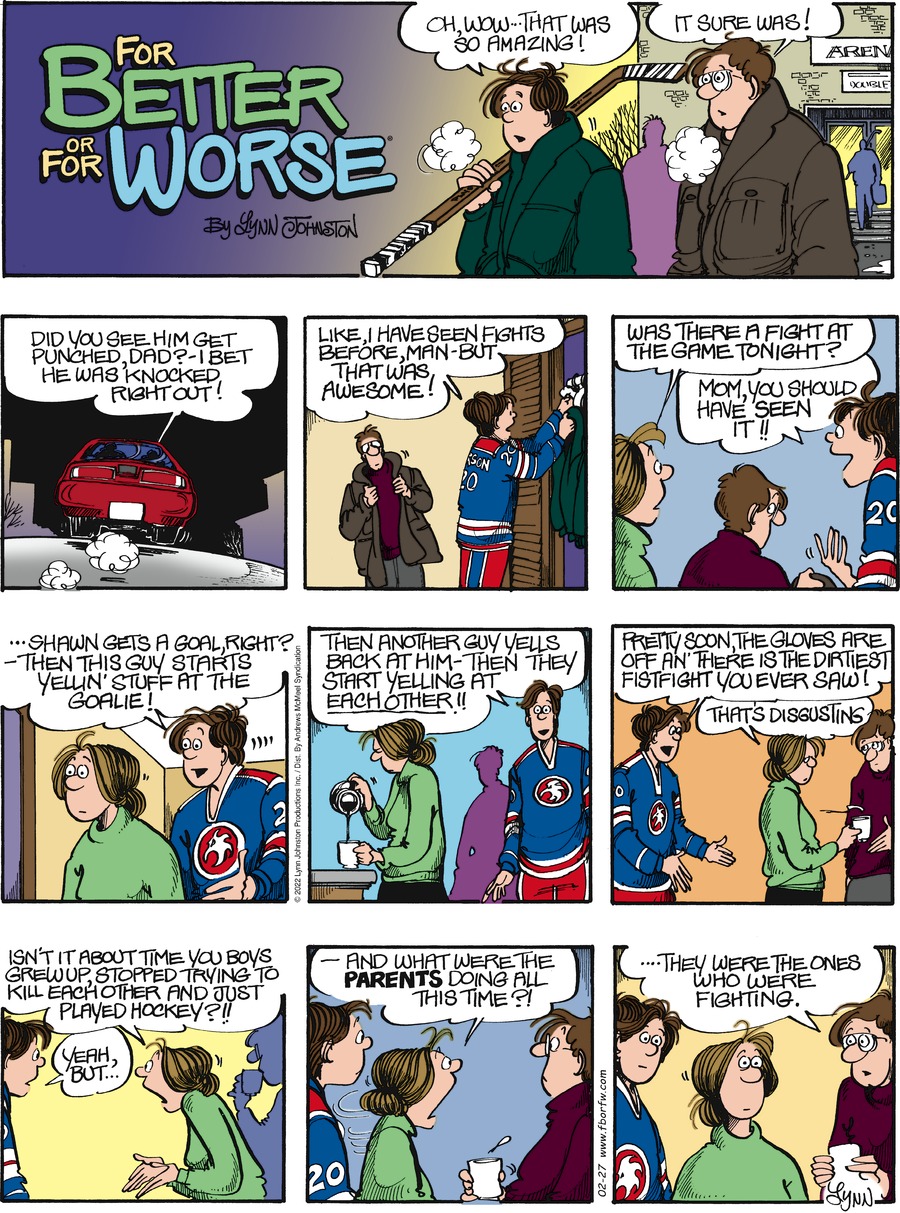 Lynn's Comments: This happened, too. Some of the nastiest behaviour at the kids’ hockey games came from parents in the stands.