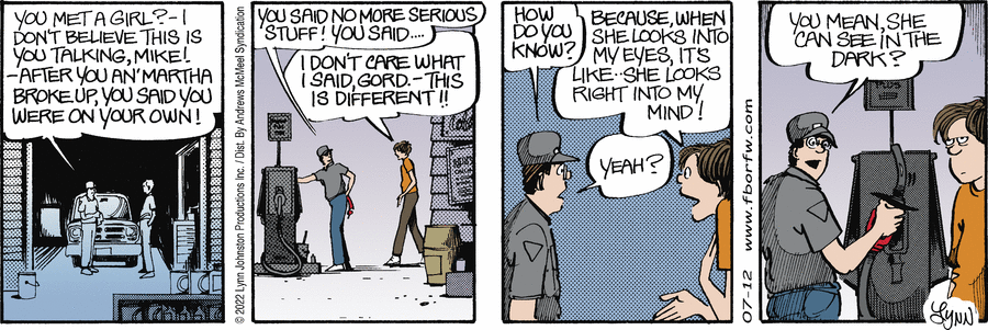 Lynn's Comments: The cell phone has changed the way we do everything. When my characters have to get in touch with someone, you can really see that this is a retro strip!