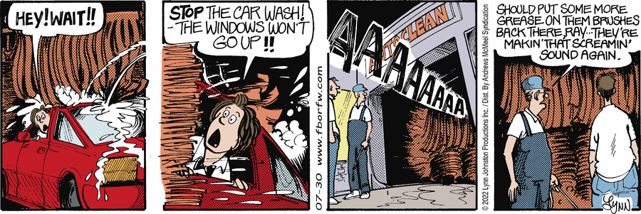 Lynn's Comments: This happened to a friend of mine. His windows were stuck in the down position as his car entered the automated wash. He said, through clenched teeth, "It wasn't even funny at the time."