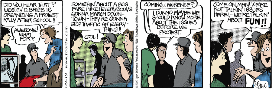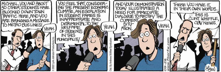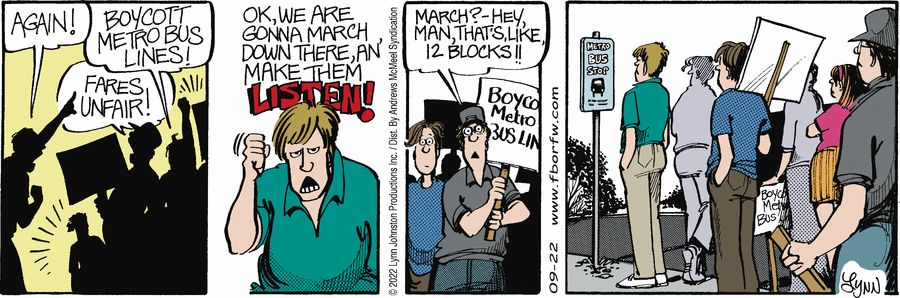 Lynn's Comments: This story is an embarrassing piece of personal history. I was in junior high school when they decided to raise the bus fares. One of the students was a real activist and she organized a rally to protest.