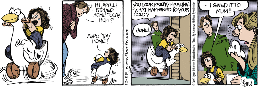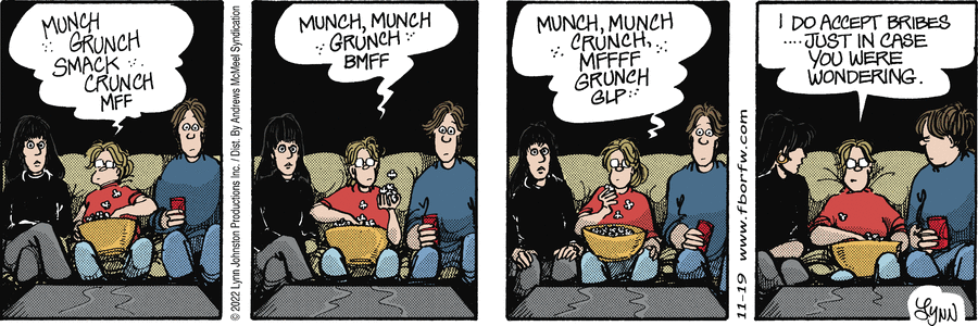 Lynn's Comments: In order to draw this Sunday strip, I needed to take a series of photographs showing how one's hands are positioned while opening a CD case. I still have these odd polaroid shots!