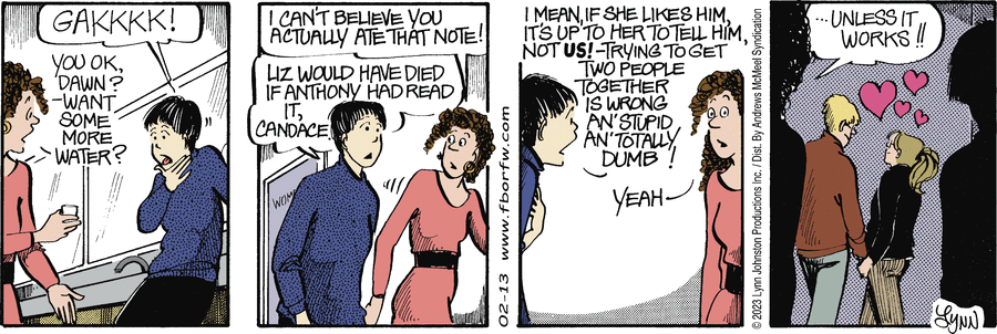 Lynn's Comments: Drawing people kissing is a challenge. Noses always get in the way! (Especially large, cartoon noses.)