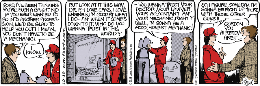 Lynn's Comments: More and more, Gordon's life and philosophy was based on a neighbour who owned a small auto body and repair shop. Gerry was honest and kind and so good at his job. It was a privilege to know him, and a pleasure to have him work on our vehicles. The time I spent at Gerry's Garage is reflected in the stories I told about Gordon Mayes.